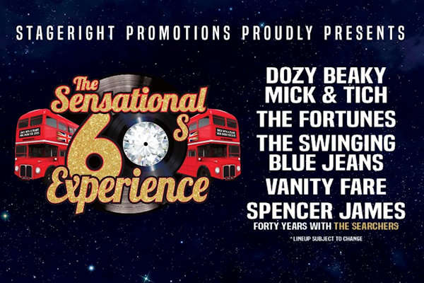 Starring Dozy Beaky Mick & Tich, The Fortunes, The Swinging Blue Jeans, Spencer James (40 years with The Searchers), and Vanity Fare, this unforgettable night is packed with timeless classics like: The Legend of Xanadu, Storm in a Teacup, Needles and Pins, Hippy Hippy Shake, Hitchin’ a Ride, and so many more!